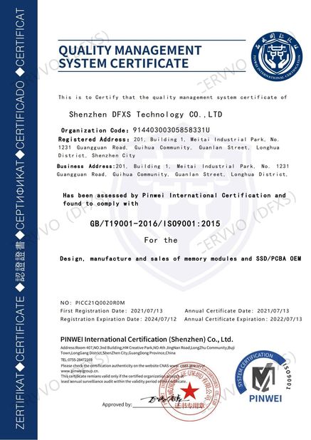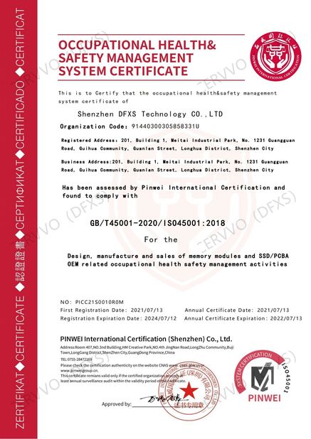 | محدوده / محدوده: | Design, manufacture and sales of memory modules and ssd/pcba oem related occupational health safety management activities |