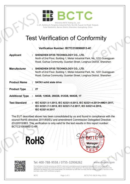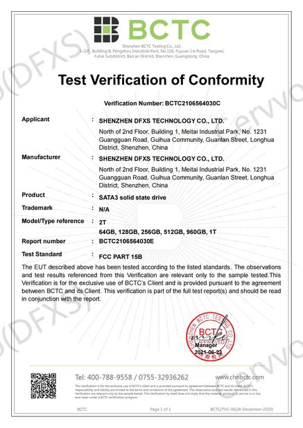 | استاندارد: | RoHS for SATA3 Solid State Drive |