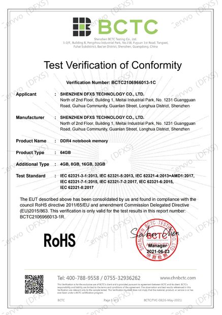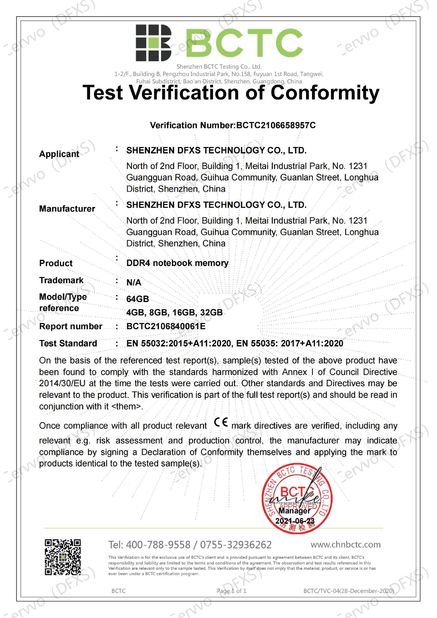 | استاندارد: | RoHS for DDR4 SODIMM RAM |